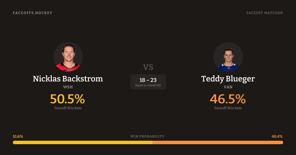 Nicklas Backstrom vs Teddy Blueger — Faceoff Head-to-Head