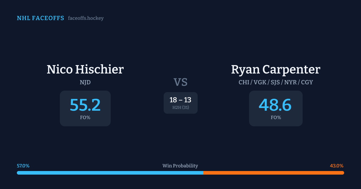Nico Hischier vs Ryan Carpenter — Faceoff Head-to-Head