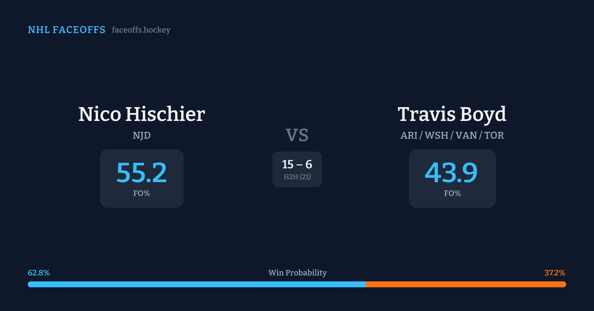 Nico Hischier vs Travis Boyd — Faceoff Head-to-Head