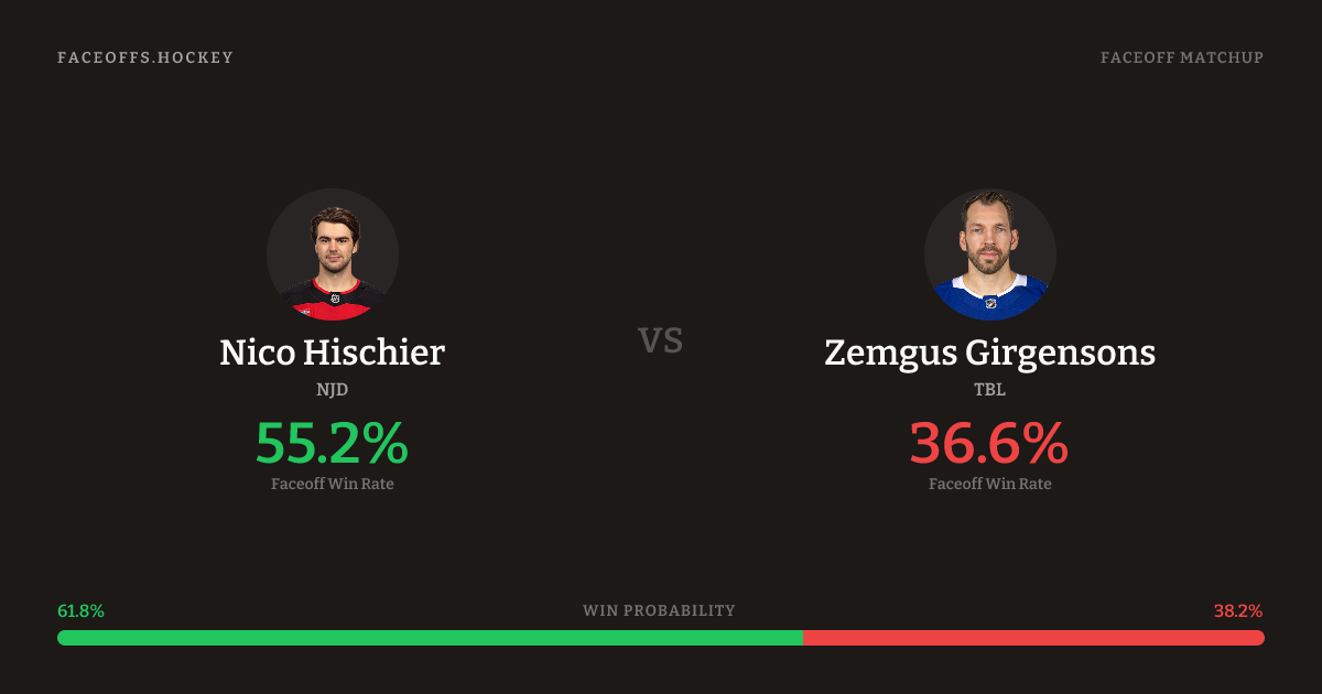 Nico Hischier vs Zemgus Girgensons — Faceoff Head-to-Head