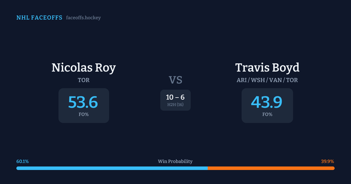 Nicolas Roy vs Travis Boyd — Faceoff Head-to-Head