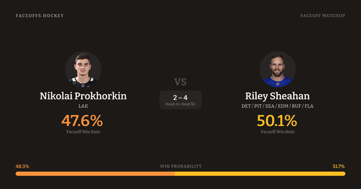 Nikolai Prokhorkin vs Riley Sheahan — Faceoff Head-to-Head