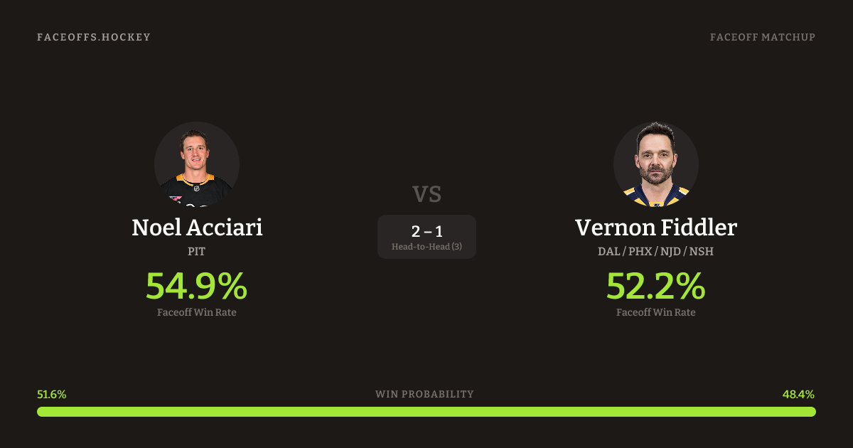 Acciari 51.5% vs Fiddler 52.1% (-0.6%)