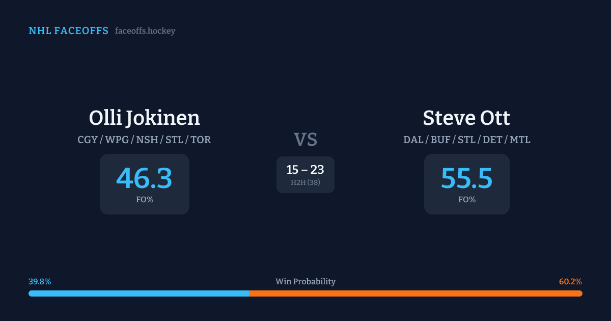 Olli Jokinen vs Steve Ott — Faceoff Head-to-Head