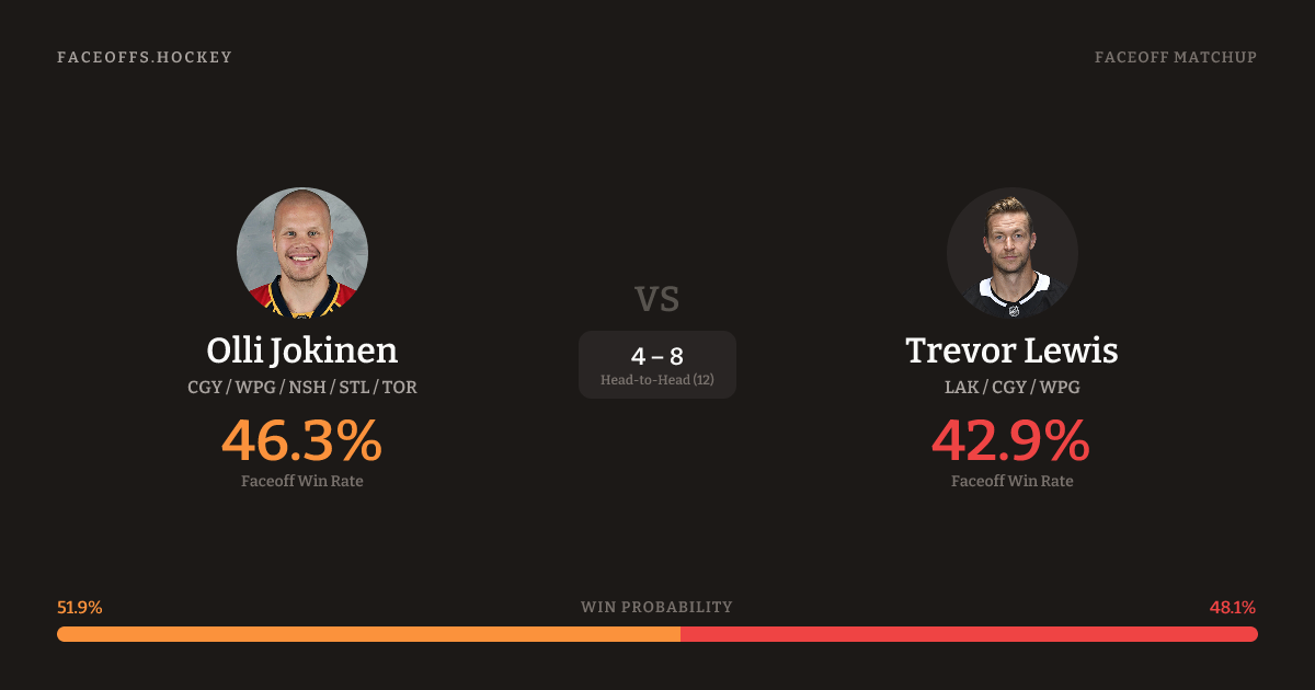 Olli Jokinen vs Trevor Lewis — Faceoff Head-to-Head