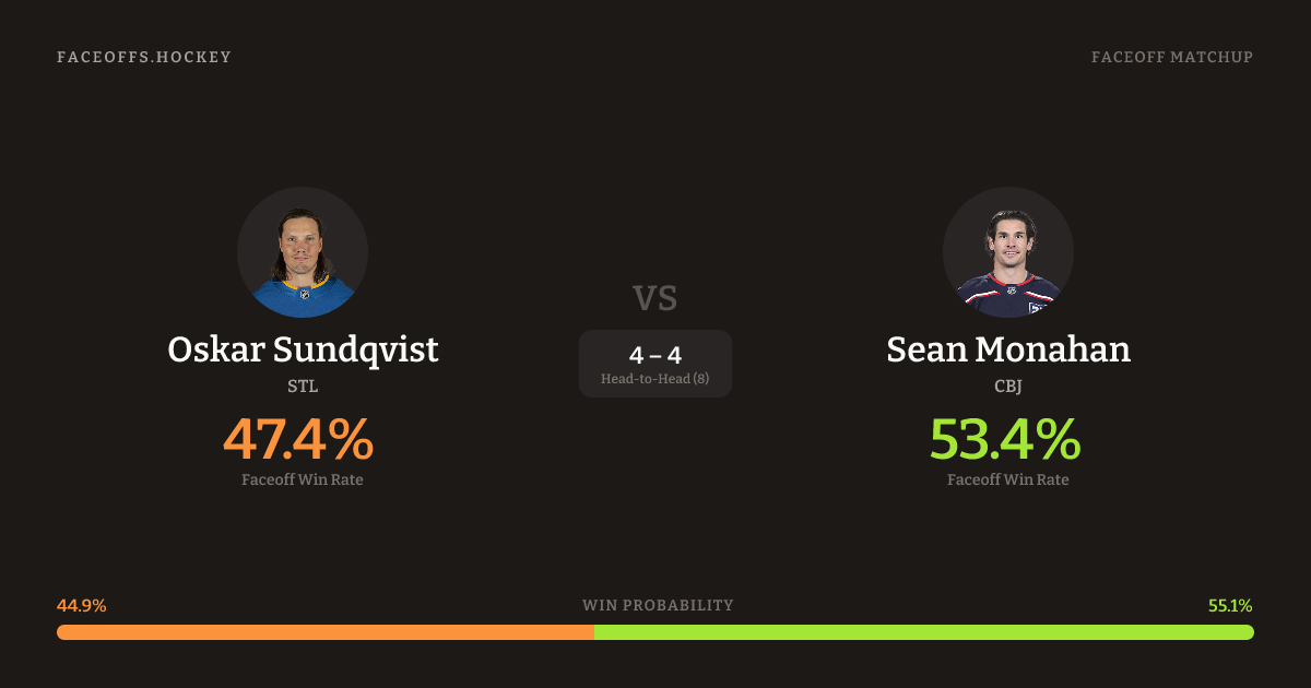 Oskar Sundqvist vs Sean Monahan — Faceoff Head-to-Head