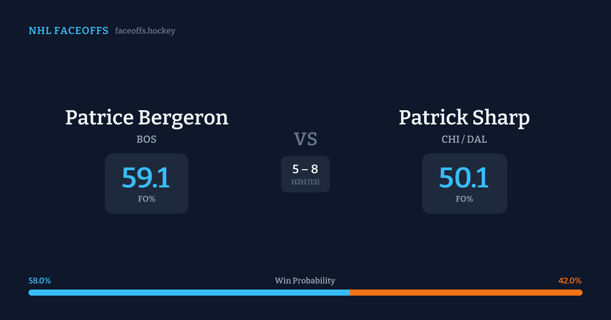 Patrice Bergeron vs Patrick Sharp — Faceoff Head-to-Head
