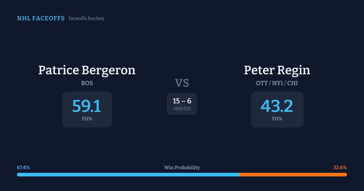 Patrice Bergeron vs Peter Regin — Faceoff Head-to-Head