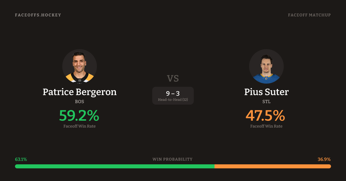 Patrice Bergeron vs Pius Suter — Faceoff Head-to-Head