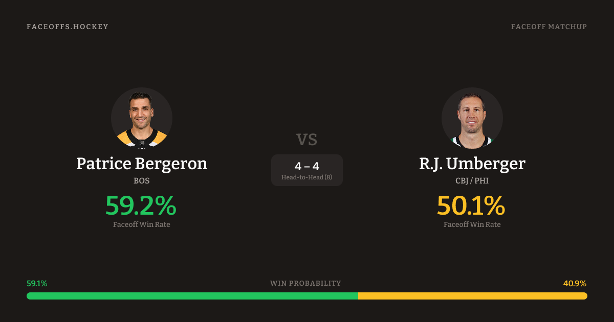 Patrice Bergeron vs R.J. Umberger — Faceoff Head-to-Head