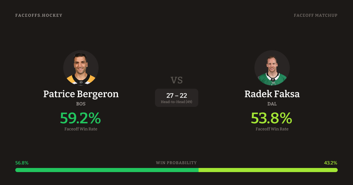 Patrice Bergeron vs Radek Faksa — Faceoff Head-to-Head