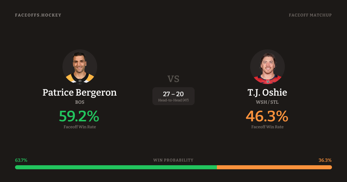 Patrice Bergeron vs T.J. Oshie — Faceoff Head-to-Head