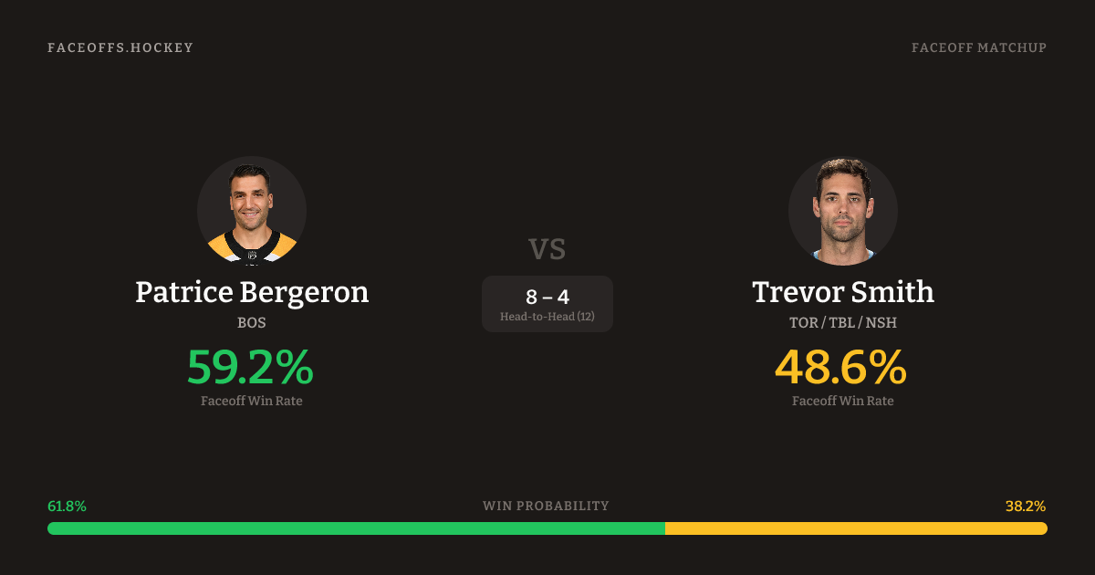Patrice Bergeron vs Trevor Smith — Faceoff Head-to-Head