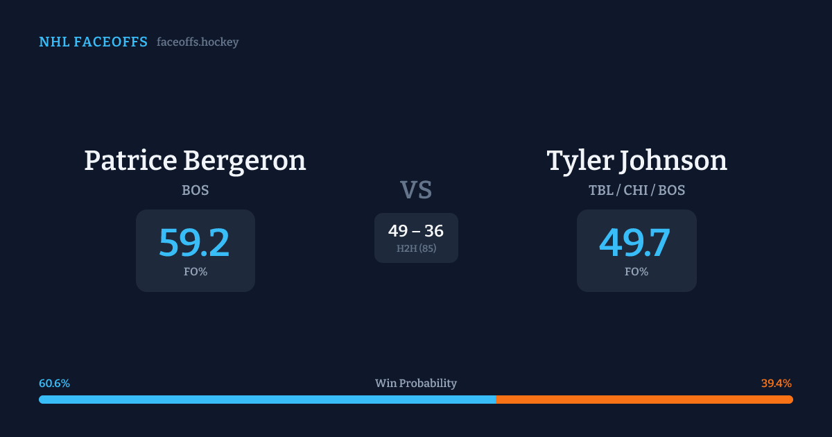 Patrice Bergeron vs Tyler Johnson — Faceoff Head-to-Head