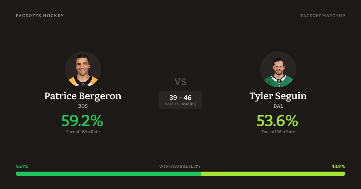 Patrice Bergeron vs Tyler Seguin — Faceoff Head-to-Head