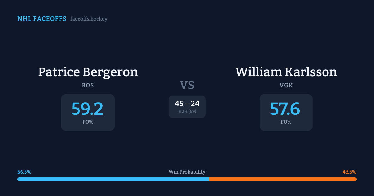 Patrice Bergeron vs William Karlsson — Faceoff Head-to-Head
