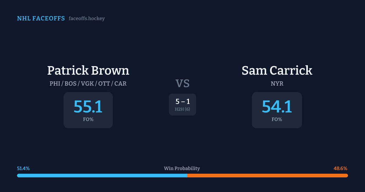 Patrick Brown vs Sam Carrick — Faceoff Head-to-Head