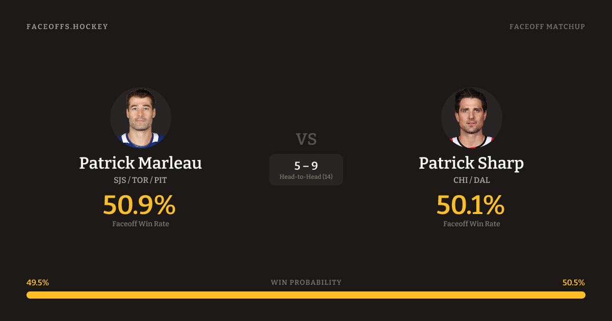 Patrick Marleau vs Patrick Sharp — Faceoff Head-to-Head