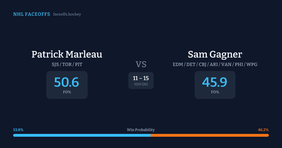Patrick Marleau vs Sam Gagner — Faceoff Head-to-Head