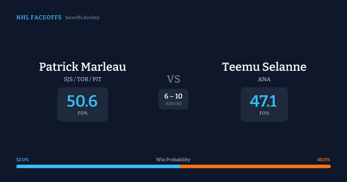 Patrick Marleau vs Teemu Selanne — Faceoff Head-to-Head