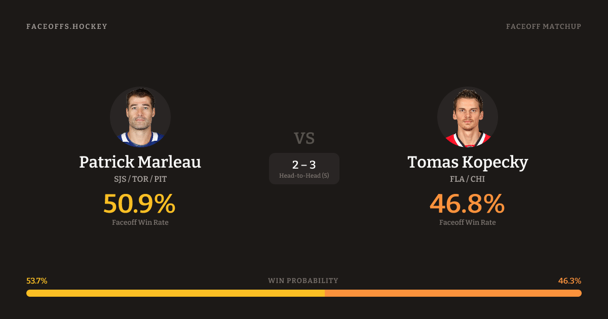 Patrick Marleau vs Tomas Kopecky — Faceoff Head-to-Head