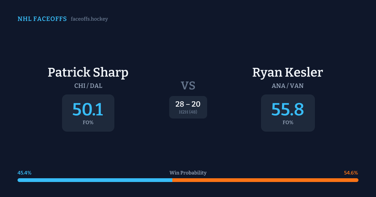 Patrick Sharp vs Ryan Kesler — Faceoff Head-to-Head