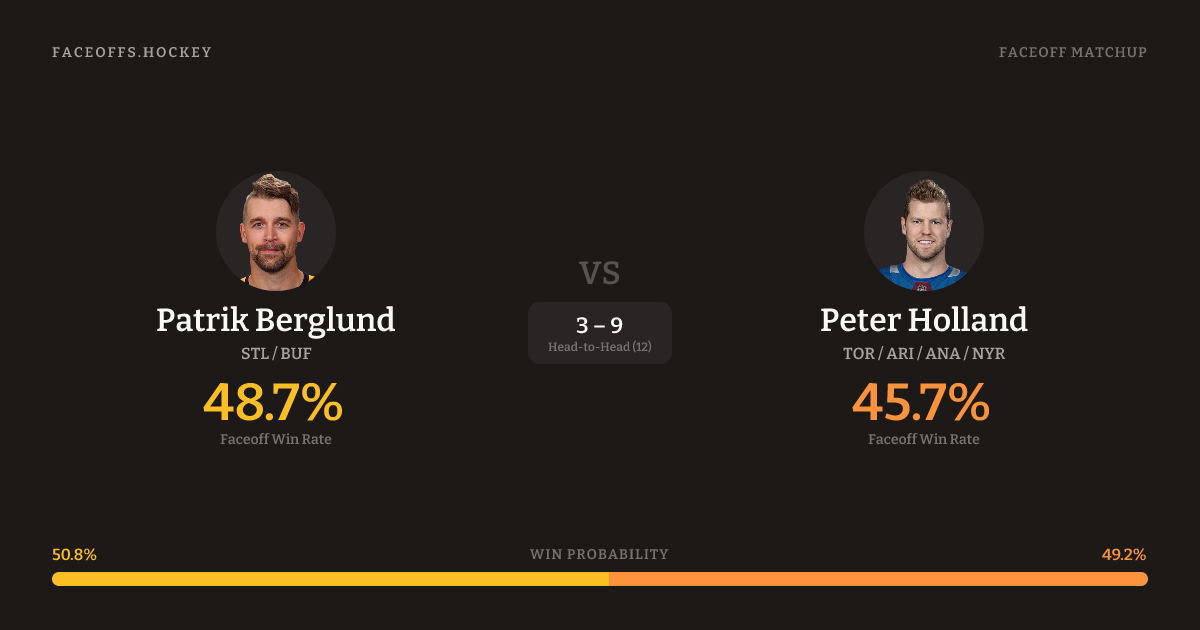 Patrik Berglund vs Peter Holland — Faceoff Head-to-Head
