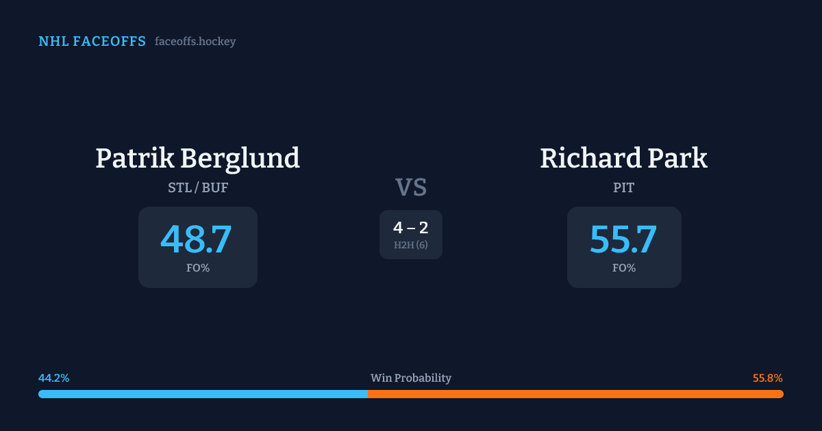 Patrik Berglund vs Richard Park — Faceoff Head-to-Head