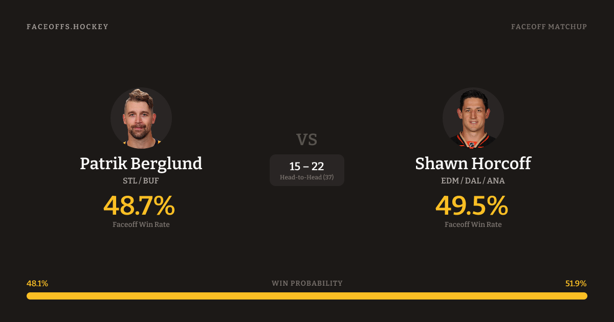 Patrik Berglund vs Shawn Horcoff — Faceoff Head-to-Head