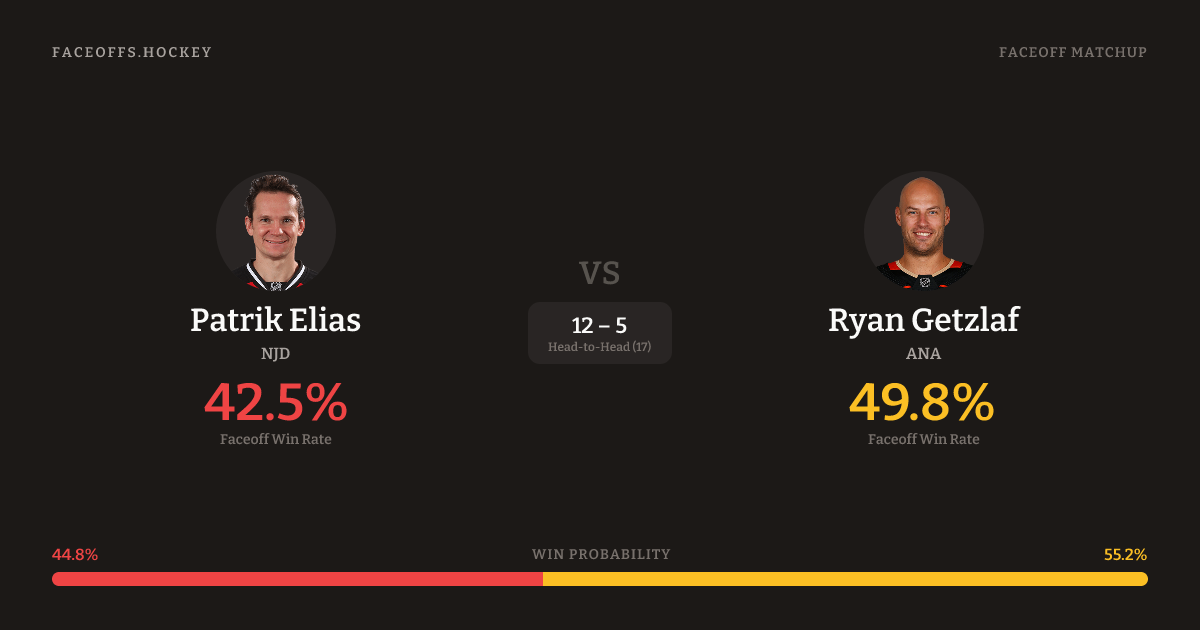Patrik Elias vs Ryan Getzlaf — Faceoff Head-to-Head