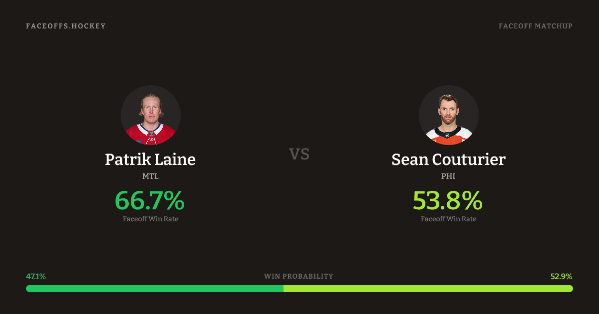 Patrik Laine vs Sean Couturier — Faceoff Head-to-Head