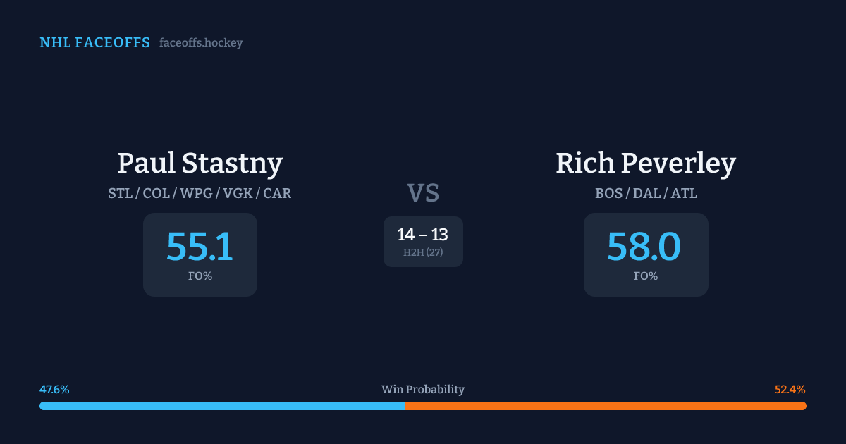 Paul Stastny vs Rich Peverley — Faceoff Head-to-Head