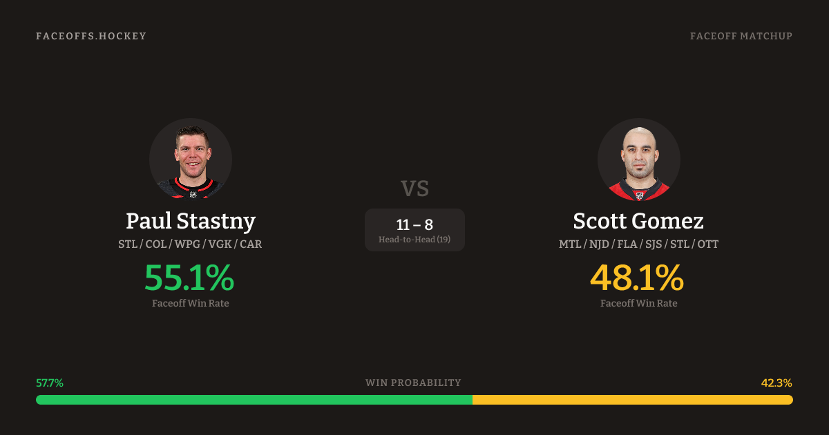 Paul Stastny vs Scott Gomez — Faceoff Head-to-Head