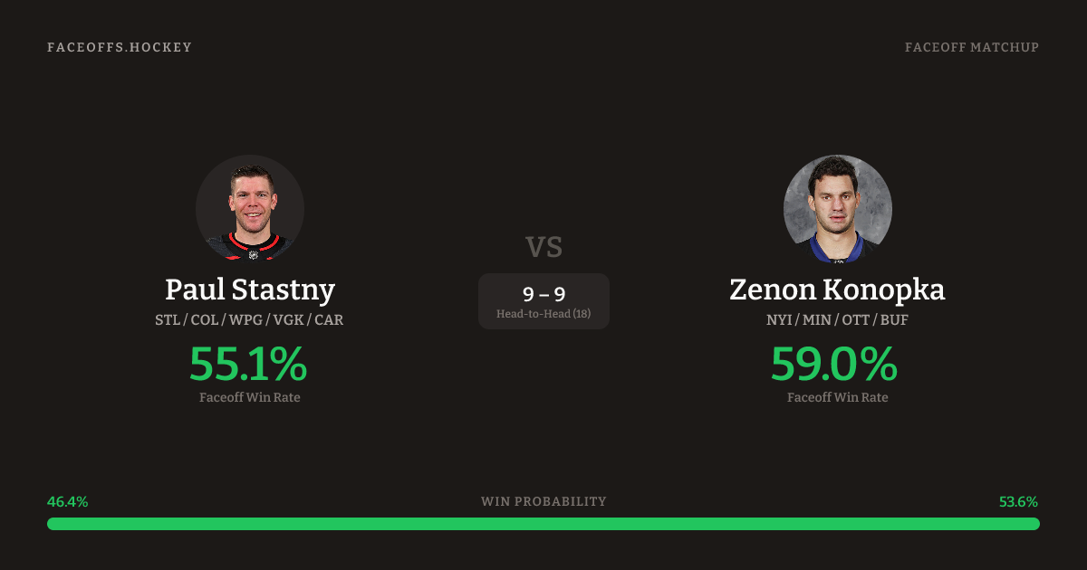 Stastny 52.1% vs Konopka 57.8% (-8.3%)