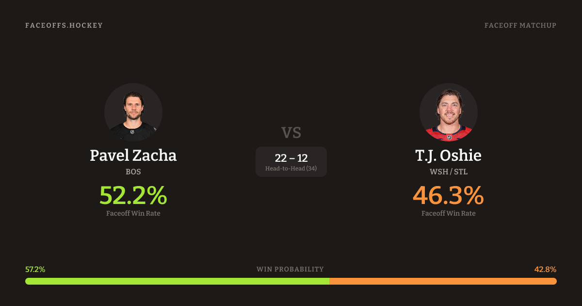 Pavel Zacha vs T.J. Oshie — Faceoff Head-to-Head