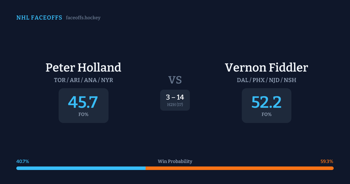 Peter Holland vs Vernon Fiddler — Faceoff Head-to-Head