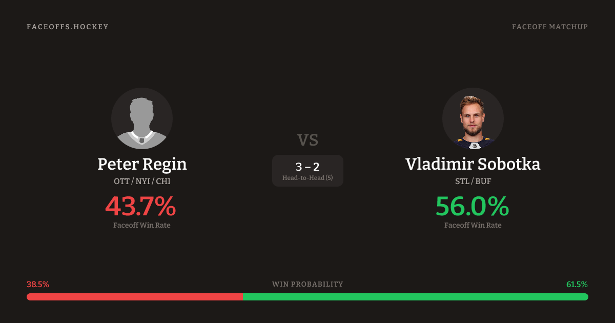 Peter Regin vs Vladimir Sobotka — Faceoff Head-to-Head