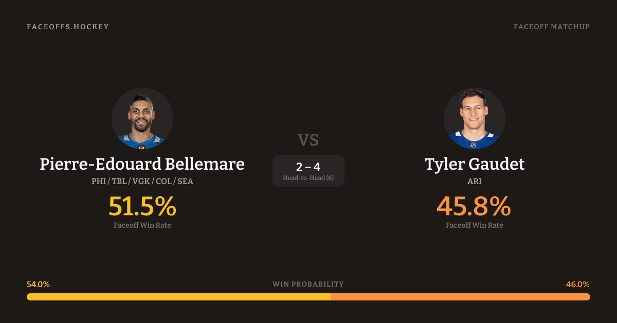 Pierre-Edouard Bellemare vs Tyler Gaudet — Faceoff Head-to-Head