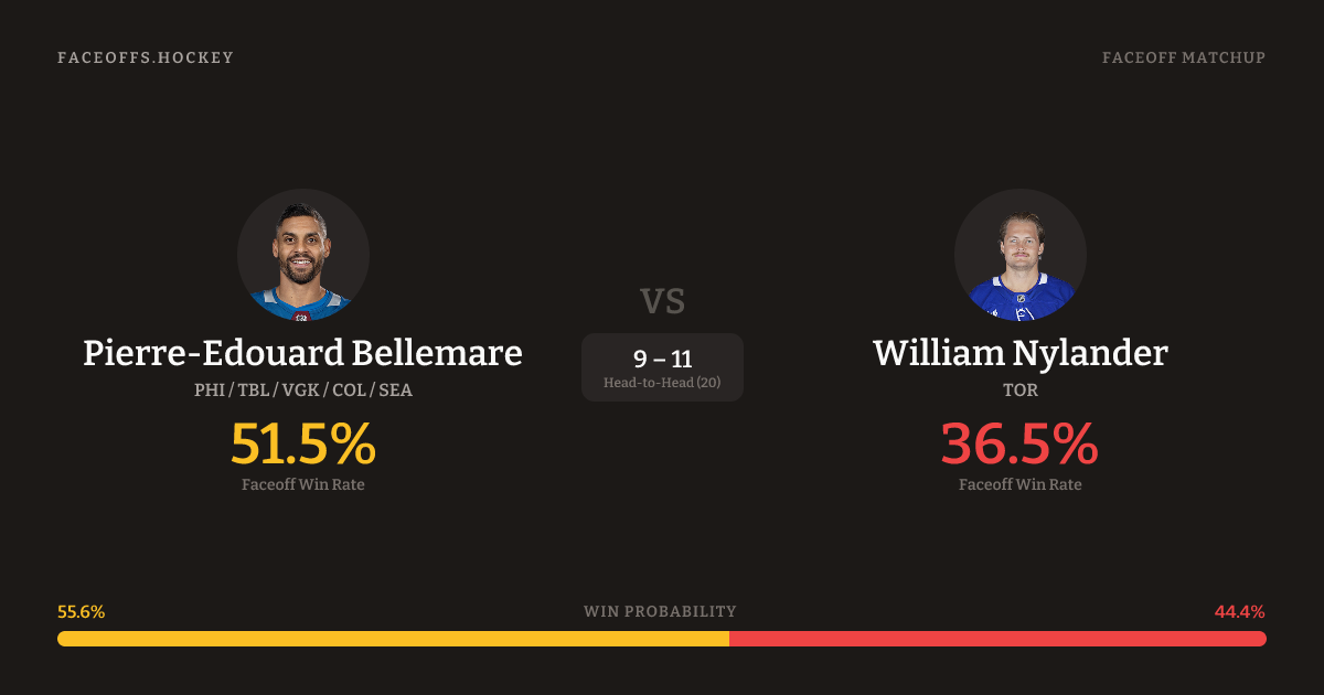 Pierre-Edouard Bellemare vs William Nylander — Faceoff Head-to-Head