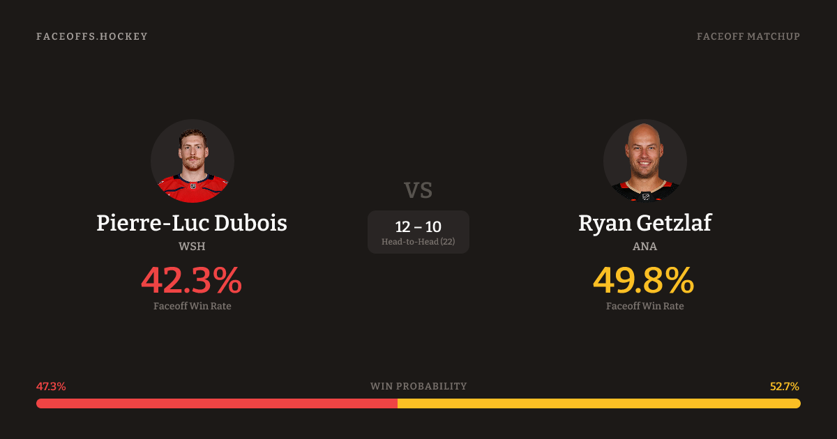 Pierre-Luc Dubois vs Ryan Getzlaf — Faceoff Head-to-Head
