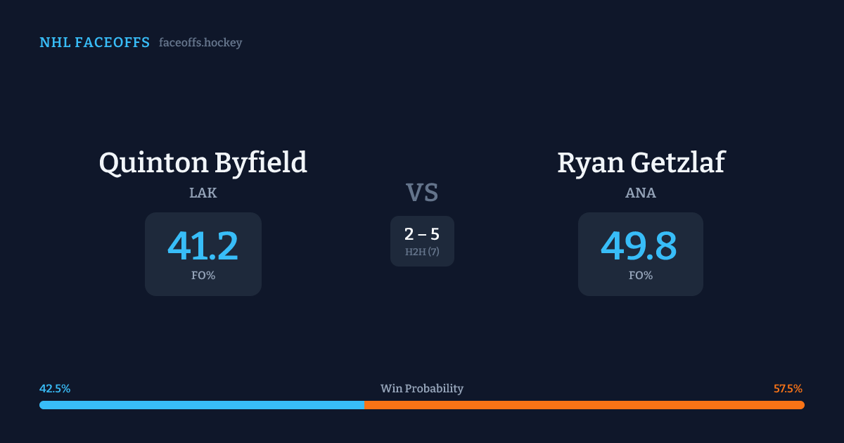 Quinton Byfield vs Ryan Getzlaf — Faceoff Head-to-Head