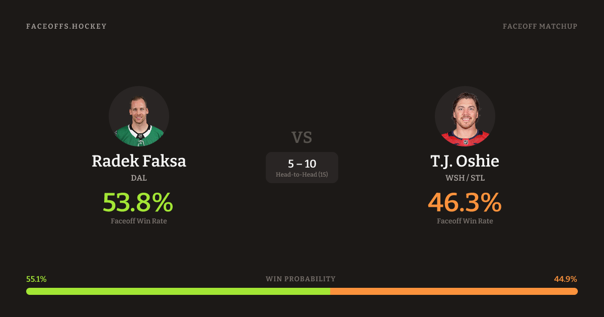 Radek Faksa vs T.J. Oshie — Faceoff Head-to-Head