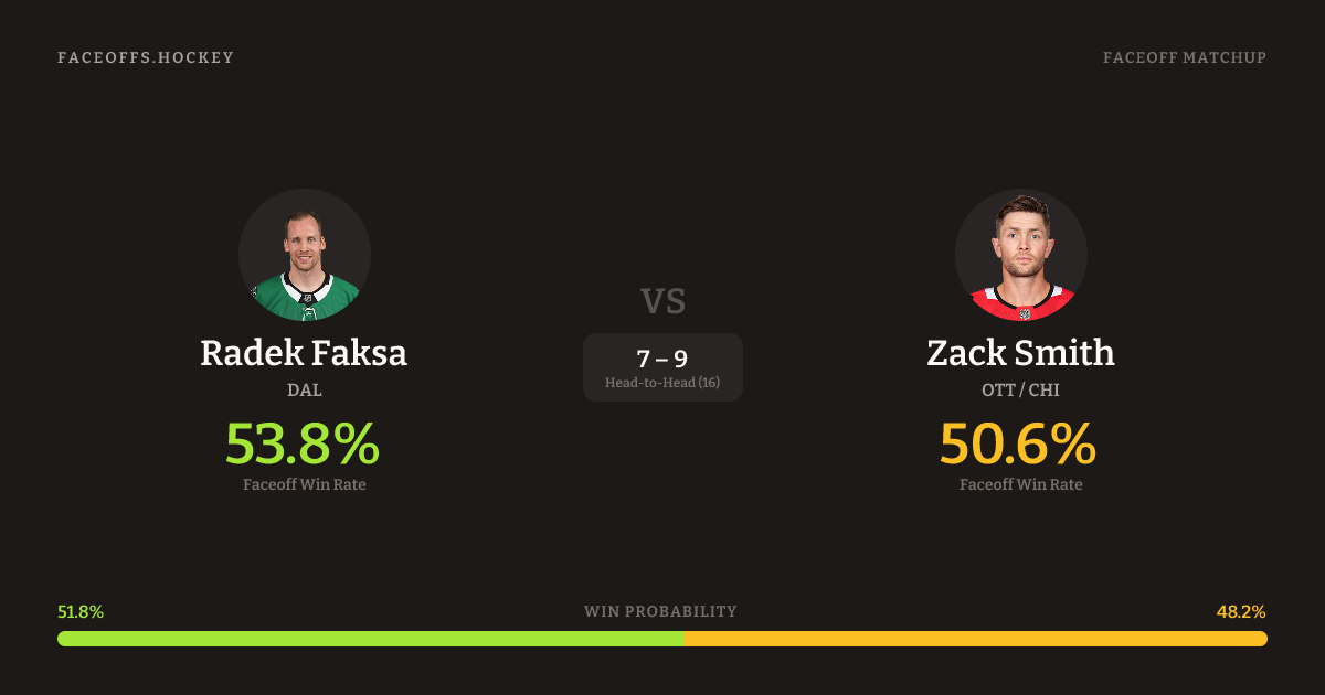Radek Faksa vs Zack Smith — Faceoff Head-to-Head