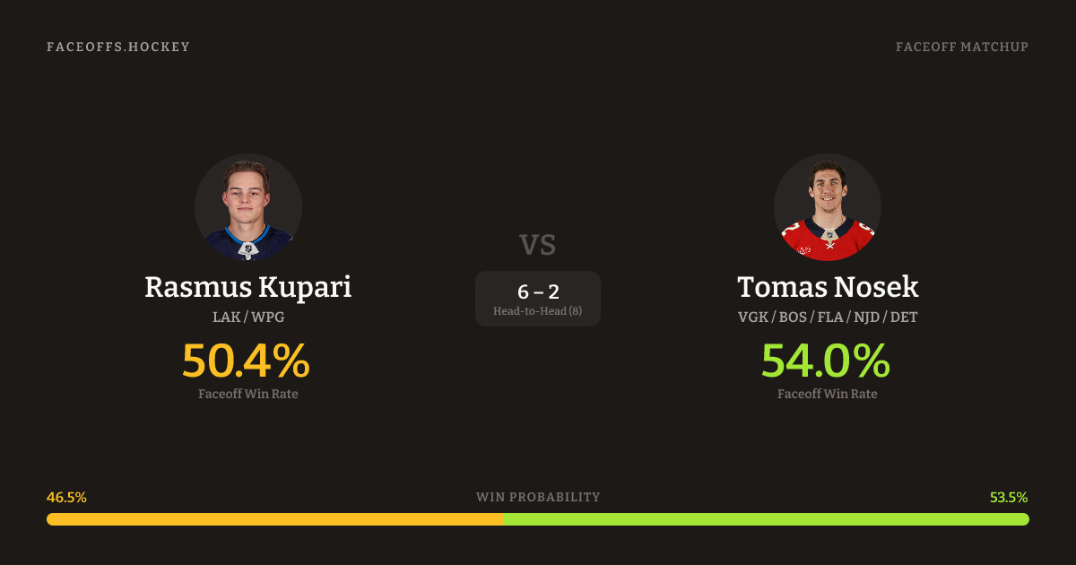 Rasmus Kupari vs Tomas Nosek — Faceoff Head-to-Head