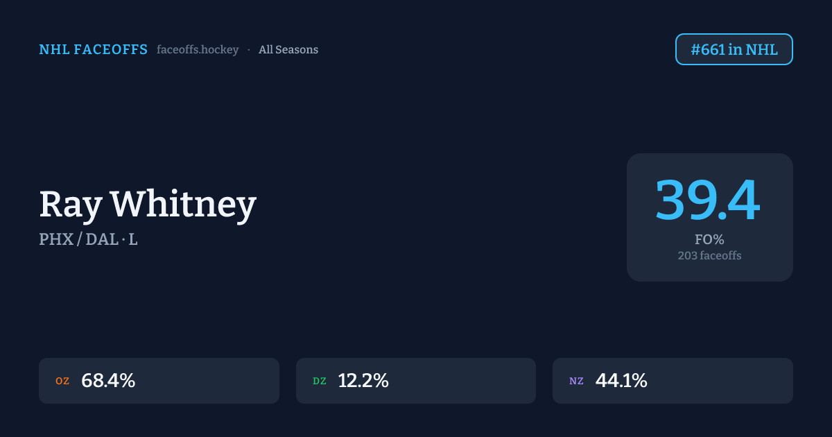 Ray Whitney has no faceoff data for All Seasons.