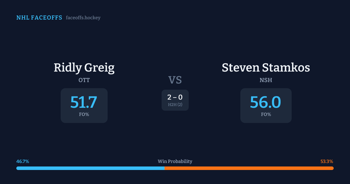 Ridly Greig vs Steven Stamkos — Faceoff Head-to-Head