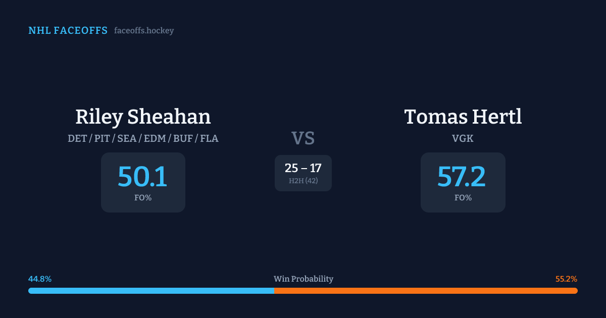 Riley Sheahan vs Tomas Hertl — Faceoff Head-to-Head