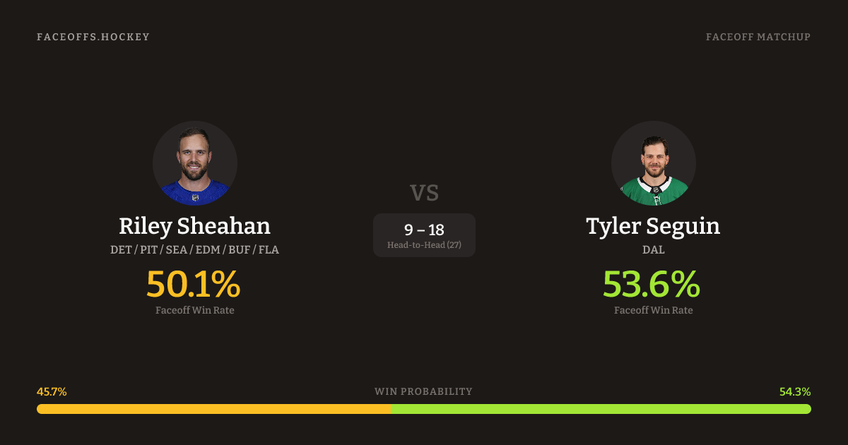 Riley Sheahan vs Tyler Seguin — Faceoff Head-to-Head