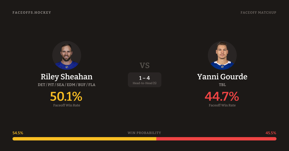 Riley Sheahan holds a +1.8% FO% edge overall.