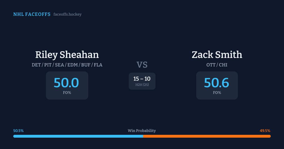 Riley Sheahan vs Zack Smith — Faceoff Head-to-Head